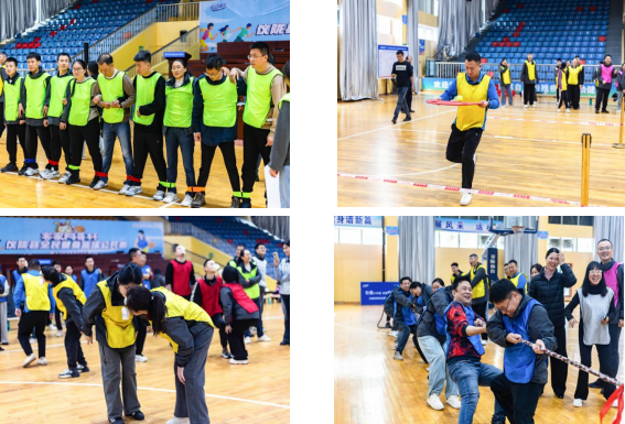 “十平八稳”和“杯水传情”展示参赛选手的个人技巧和身体协调性,参赛选手小心翼翼,引得现场观众捧腹大笑;在“多人多足”项目里面,参赛选手互相配合,协力向前,让人热血沸腾;拔河比赛作为压轴项目,更是将现场气氛推向了高潮。6支队伍两两对决,他们咬紧牙关、奋力拼搏,将对方一步步拉向自己的阵地。